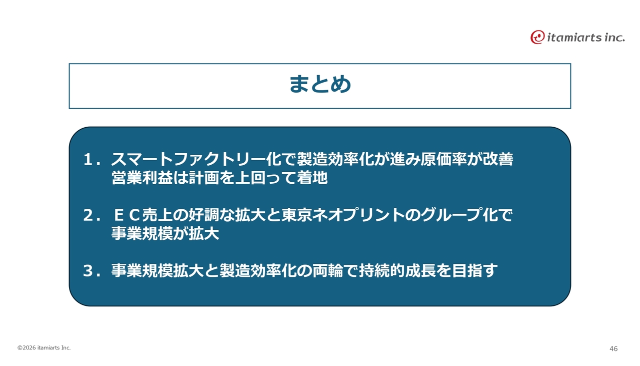 以上で、株式会社イタミアート2026年1月期決算説明会を終了します。ご多用の中、ご視聴いただき、誠にありがとうございました。