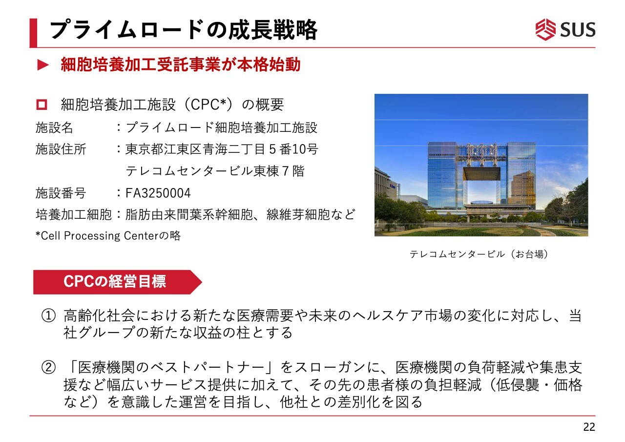 プライムロードについては、細胞培養加工施設が完成したため、受託事業を大きく展開していく段階に入りました。