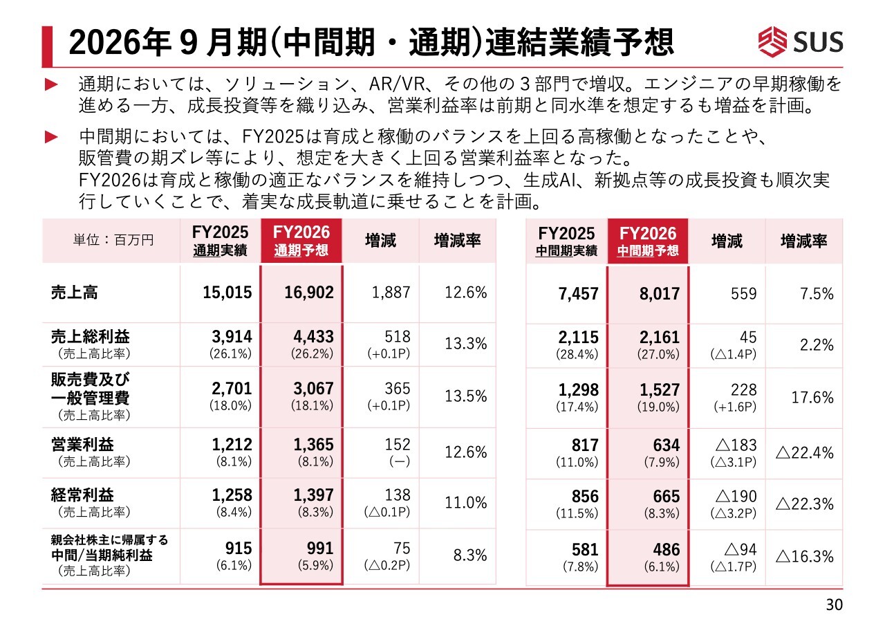 2026年9月期(中間期・通期)連結業績予想