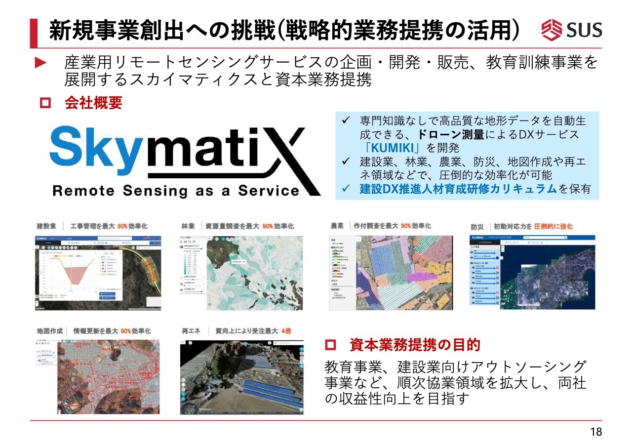 新規事業の1社目は、スカイマティクスです。