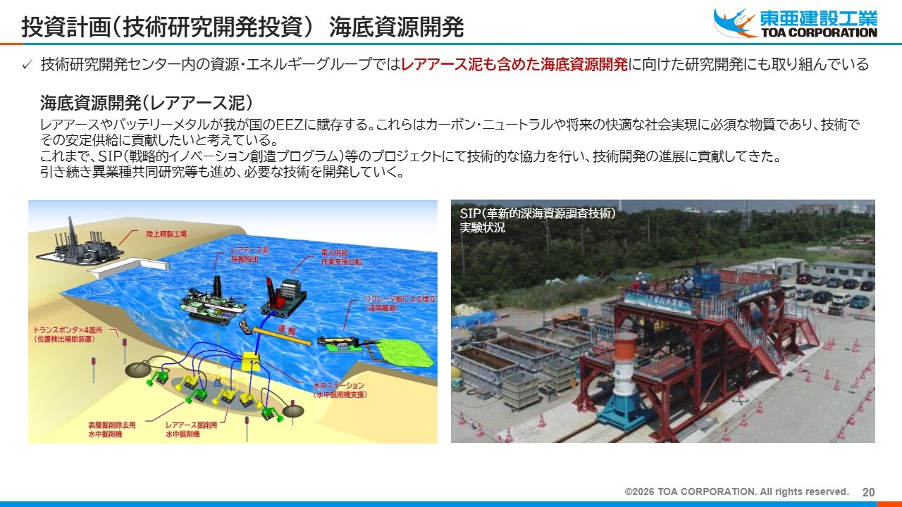 木村:技術研究開発投資の中には、海底資源開発があります。技術研究開発センター内の資源・エネルギーグループでは、レアアース泥を含む海底資源開発を進めています。