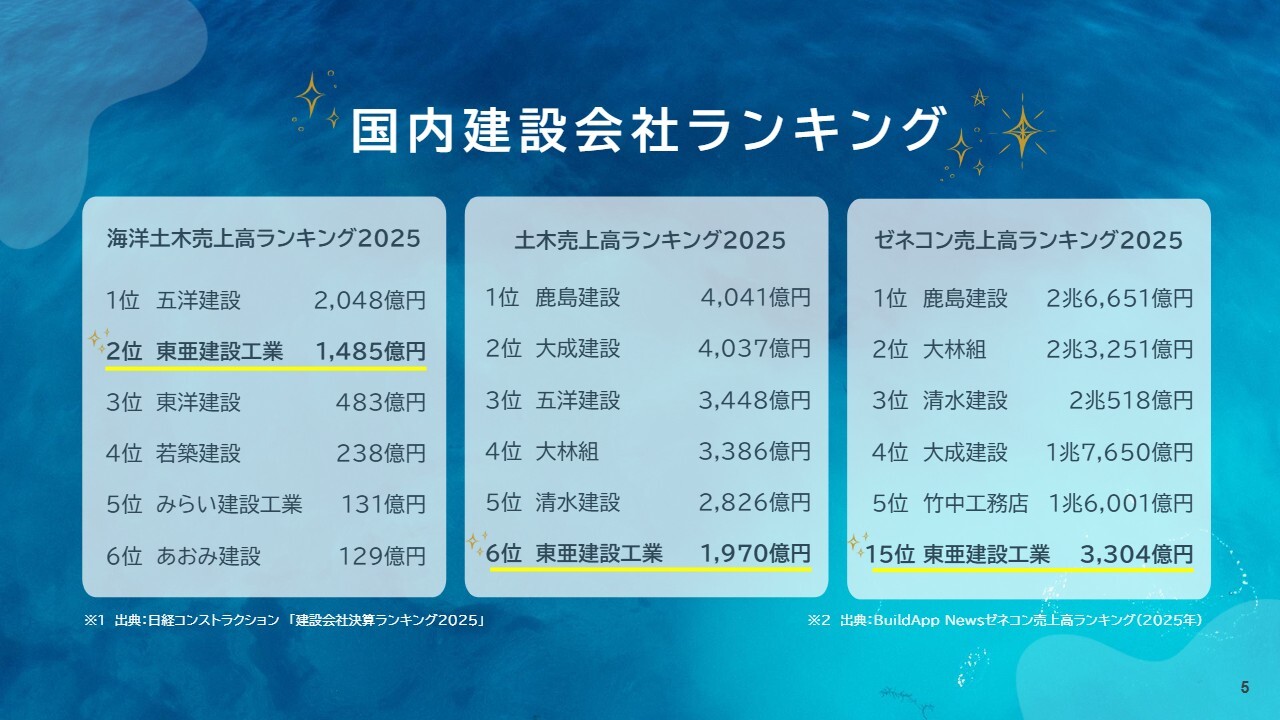 かつては30位前後だった時期もありましたが、建築部門が伸びたことにより大きく成長しています。基本的には、土木分野が当社の強みです。
