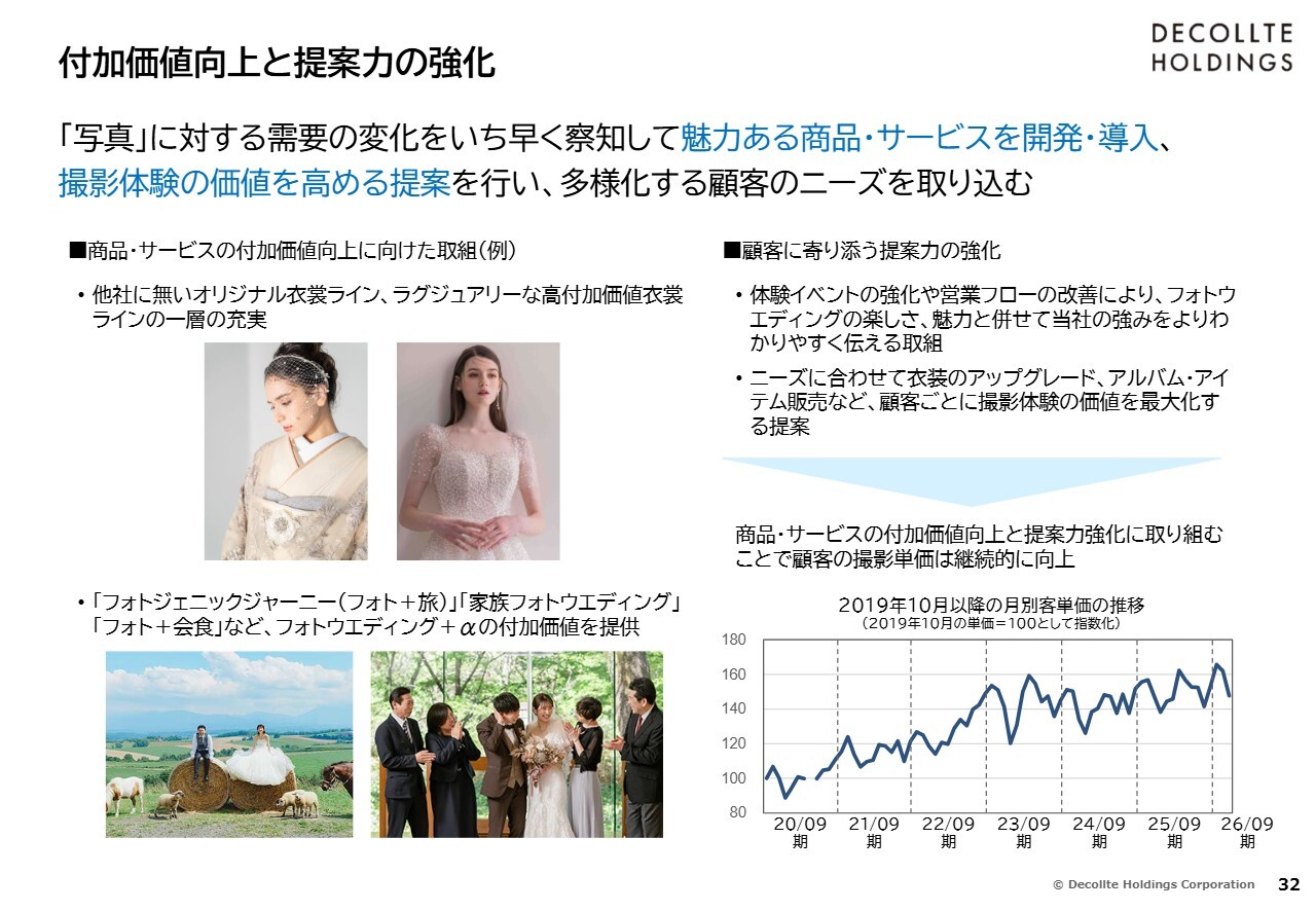 新井:おっしゃるとおりです。後ほどご説明しますが、単価は引き続き上昇しています。結婚式を挙げる方が減少している中で、従来は結婚式にかけられていた費用がフォトウエディングに向いてきています。場合によっては費用が結婚式の10分の1程度に抑えられるため、大きな追い風となっています。