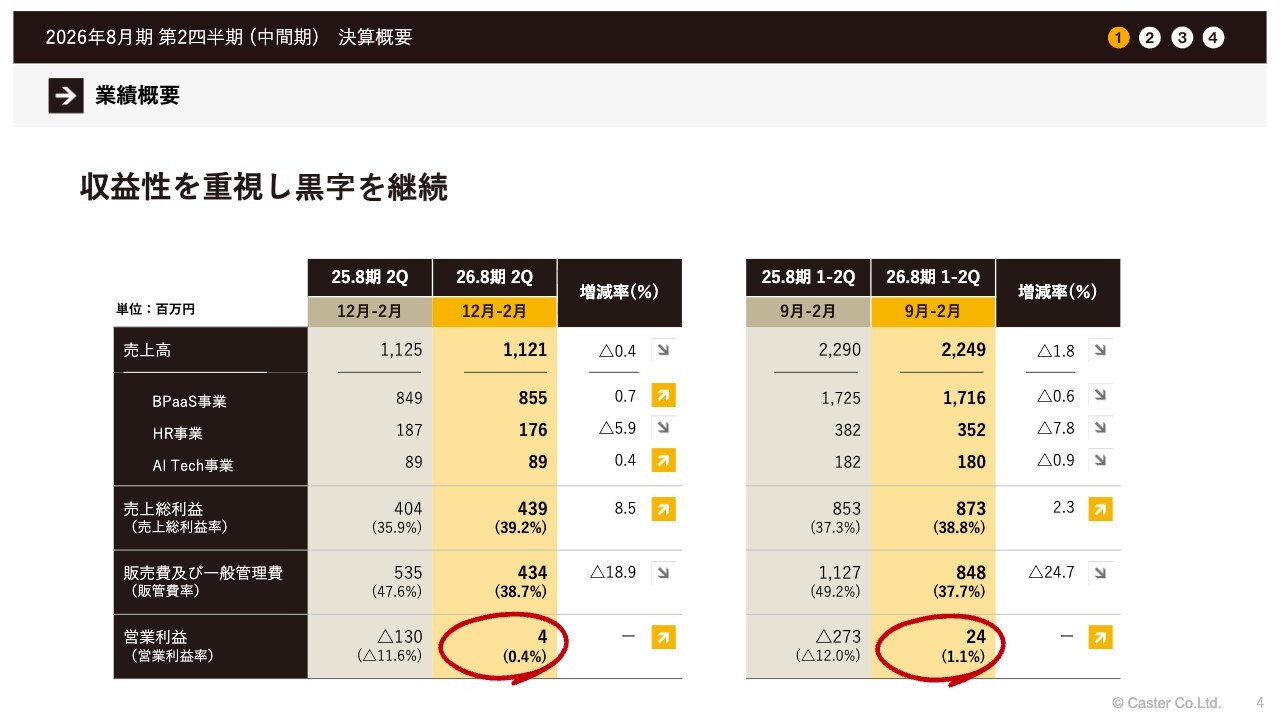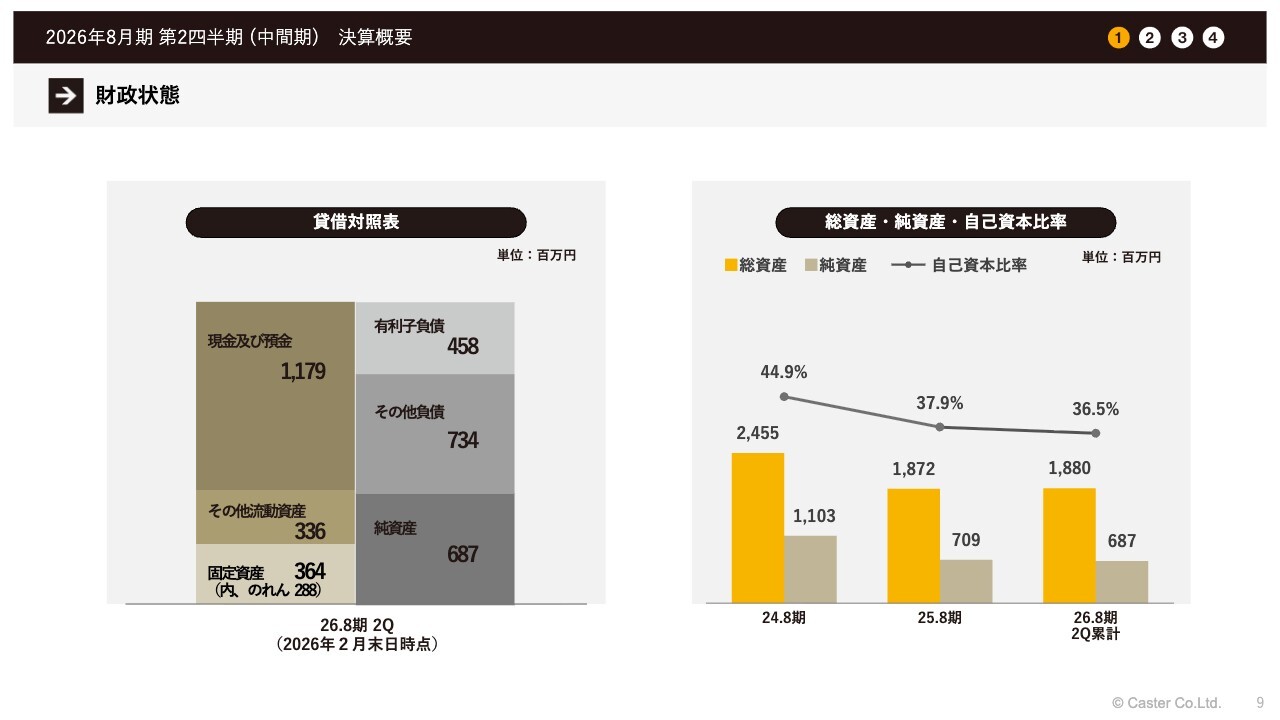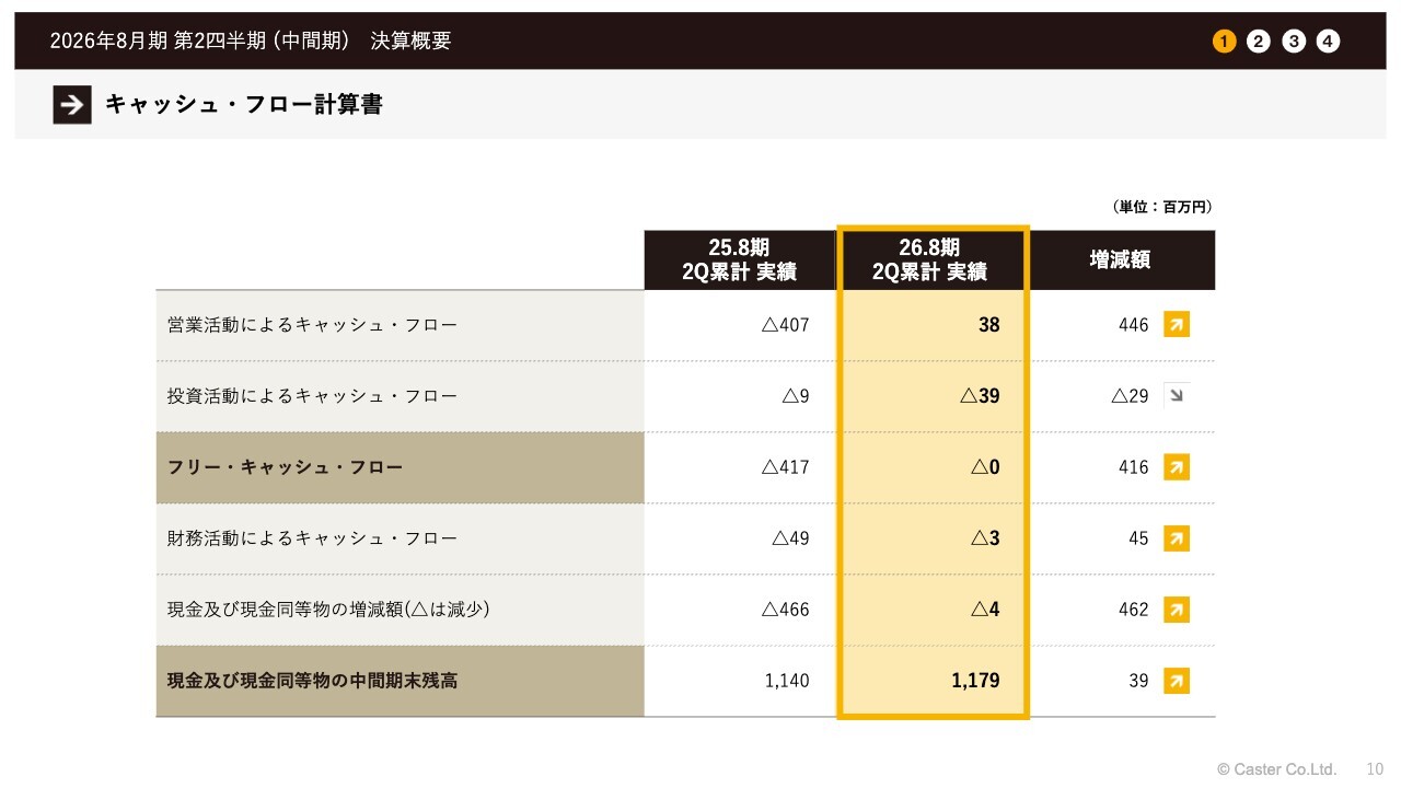 中川祥太氏:代表取締役の中川です。2026年8月期第2四半期の決算概要を発表します。事前に多くの質問をいただいていますので、できるだけ迅速にお答えしていきたいと思います。