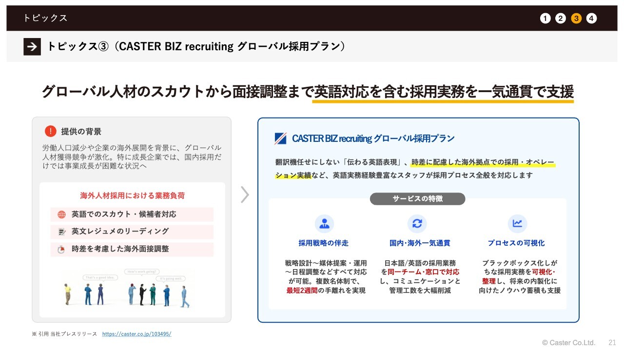 トピックス③(CASTER BIZ recruiting グローバル採用プラン)