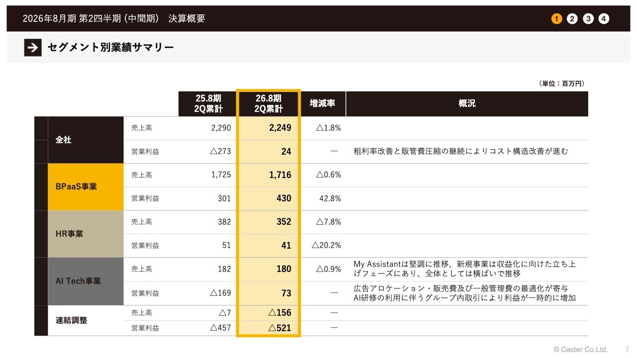 セグメント別業績サマリー