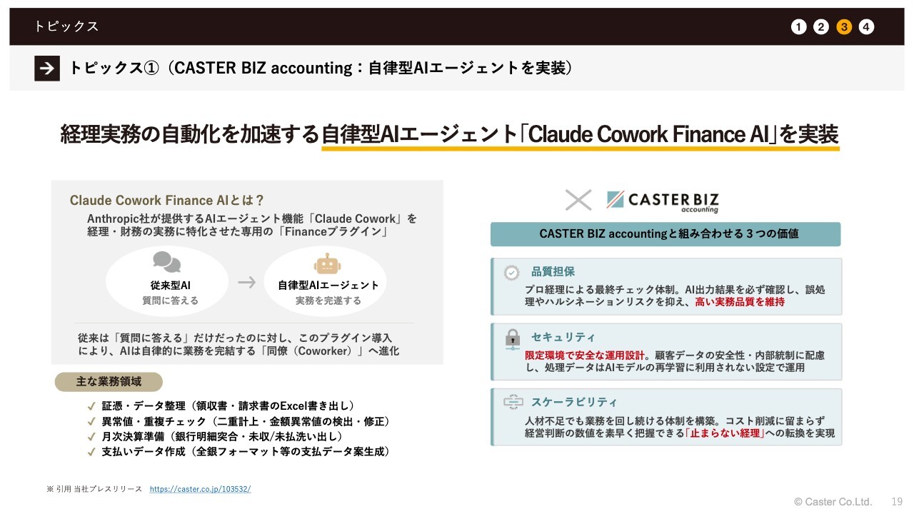 トピックス①(CASTER BIZ accounting:自律型AIエージェントを実装)