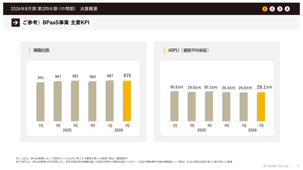 おっしゃるとおり、現時点で主要KPIとして開示しているのは、BPaaSを主軸とした事業の開示数字となっています。例えば「Pig out」「新NEO assistant」「AI社員」などの新規施策に関する開示は、現時点では含めていません。