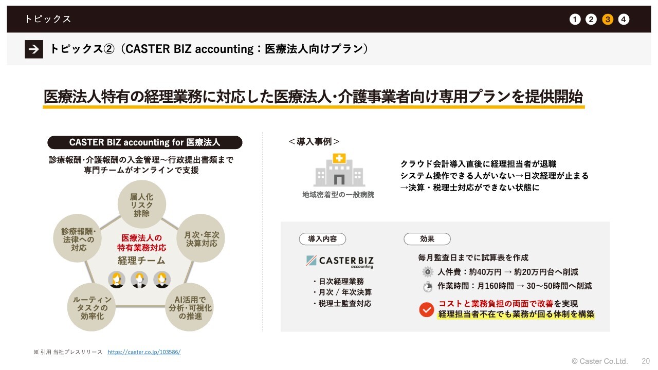 トピックス②(CASTER BIZ accounting:医療法人向けプラン)