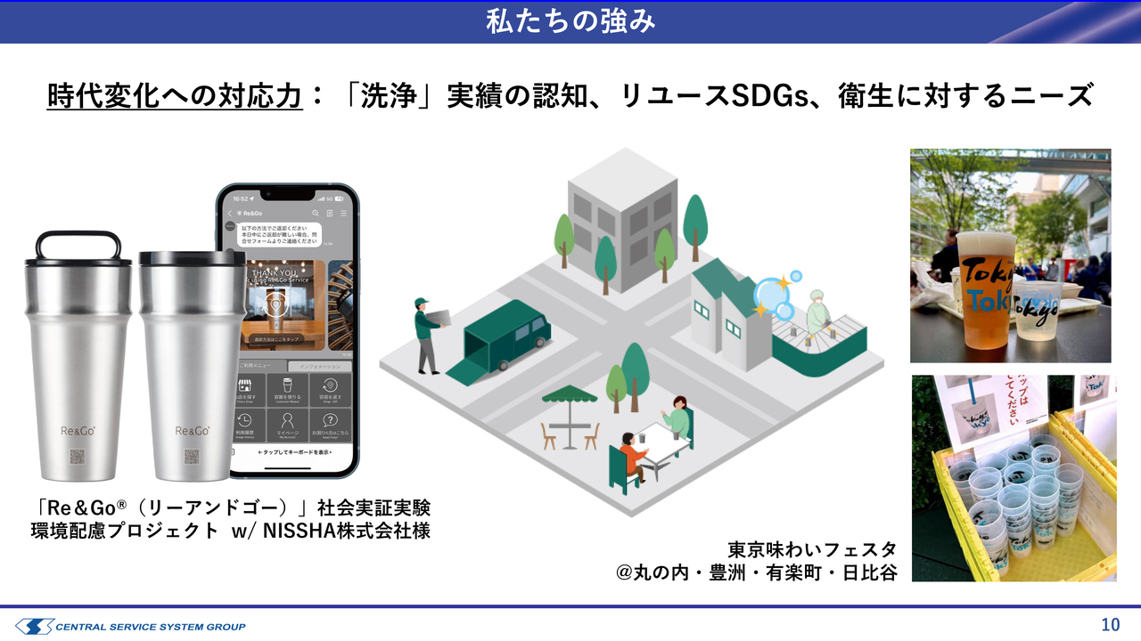 単に洗浄するだけでなく、リユースやSDGsといった文脈、あるいは衛生面などをキーワードにして、ホテルの食器洗浄にとどまらずに私たちの業務が広がっている点が当社の強みです。こうした取り組みをマーケティング面で強化・活用しながら、新たな取引先の開拓につなげていきたいと考えています。