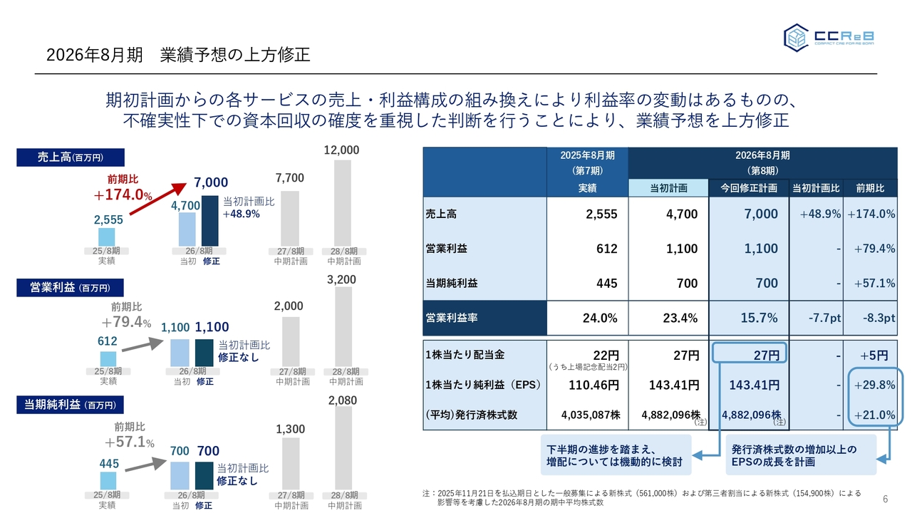 足元、金融環境を含め経済情勢の不確実性が非常に高い中、当社も公募増資で調達した資金をしっかりと回収していかなくてはならないということで、資本回収の確度を重視したことによって、今回、業績予想の上方修正をしました。