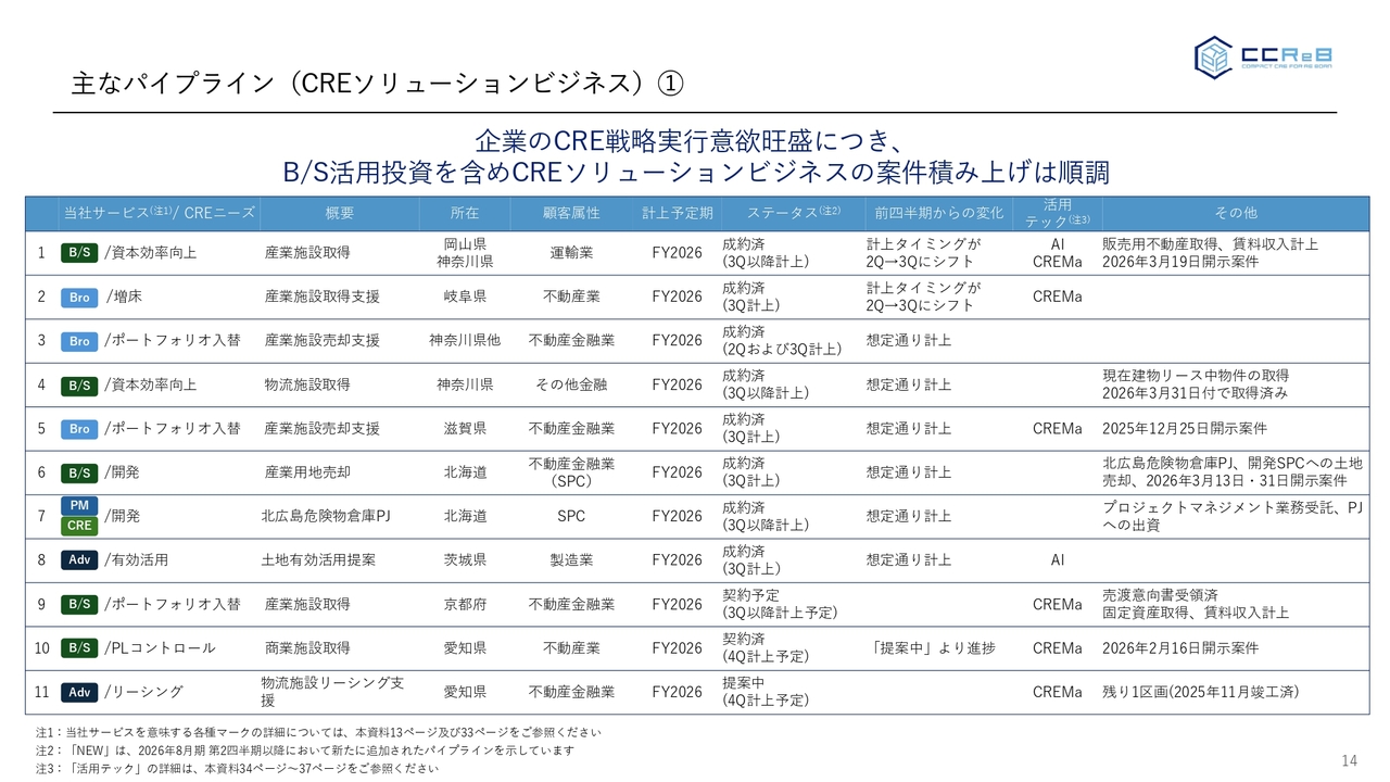 主なパイプライン(CREソリューションビジネス)①