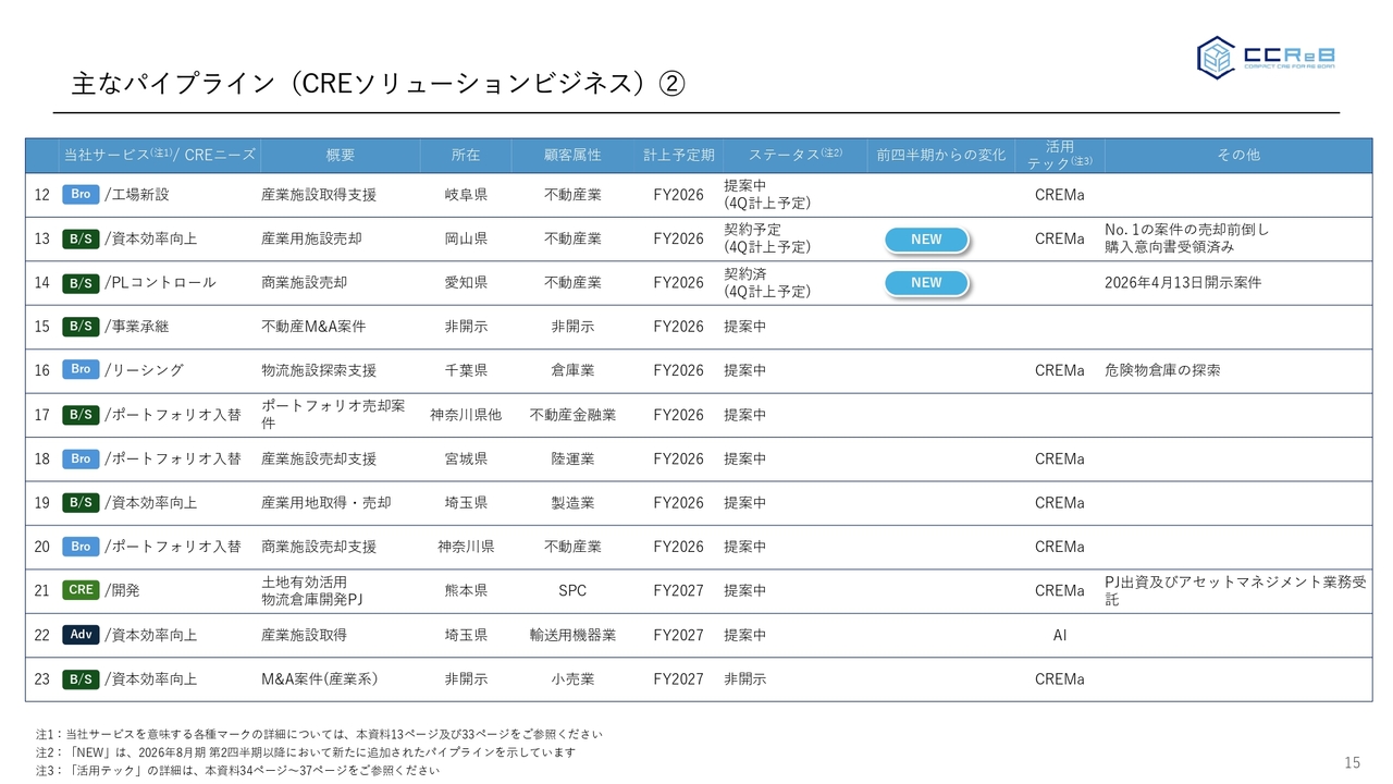 主なパイプライン(CREソリューションビジネス)③