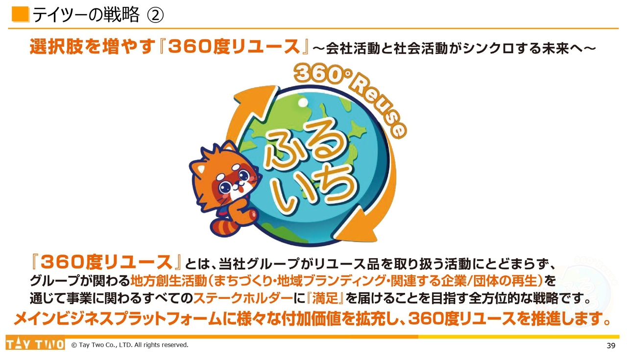 この全方位的な戦略の下、メインビジネスプラットフォームに多様な付加価値を拡充し、「360度リユース」として推進していきたいと考えています。