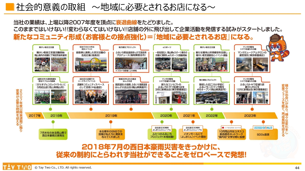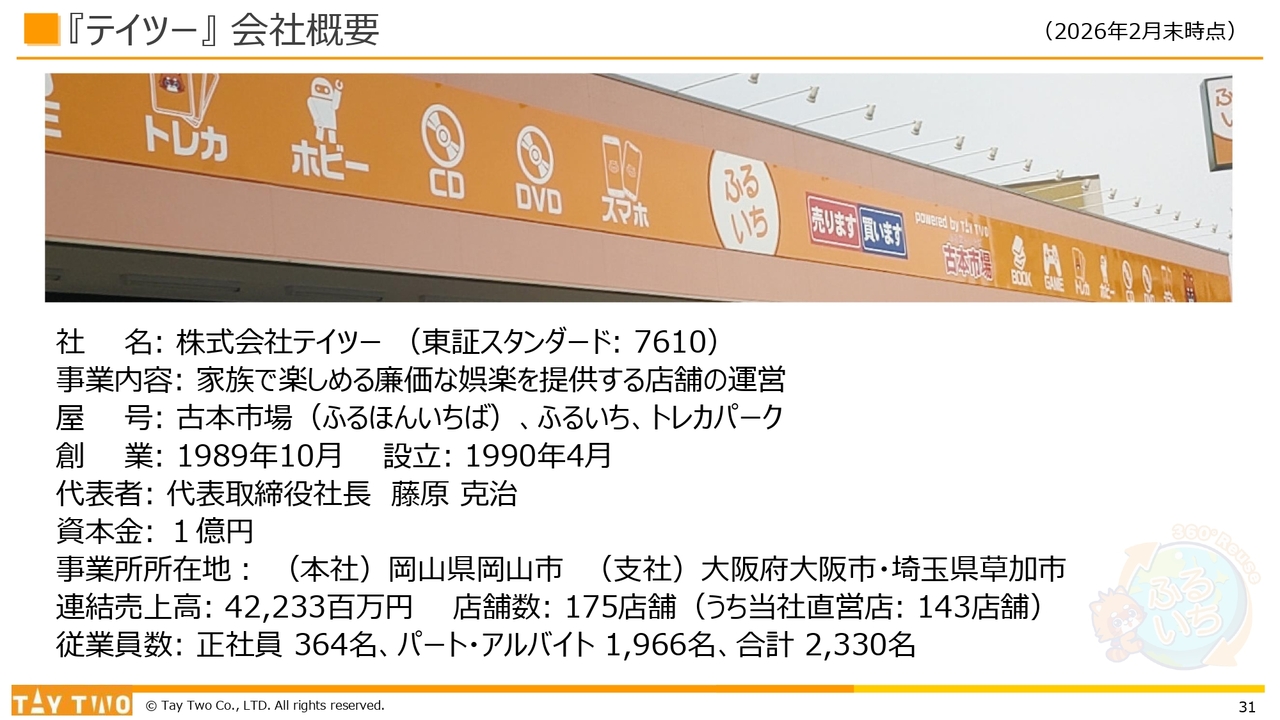 また、古本の管理に関して、スライドには明記していませんが、従来の取組に加え、利益面の向上を目指した管理体制の開発も進めています。販促的な位置づけとしても非常に重要な商材として、当社の今後の経営においても引き続き注力していきます。