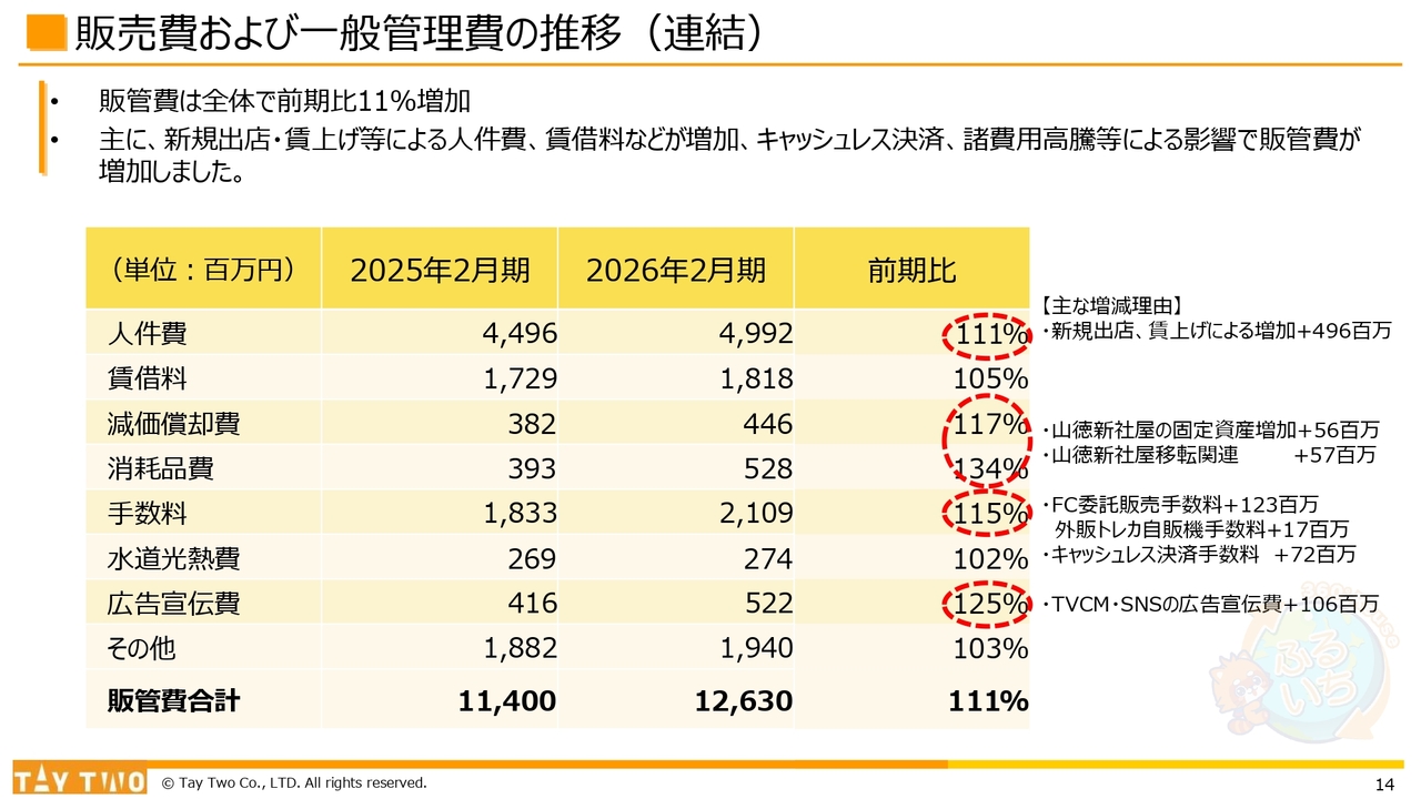 主な要因は、新規出店や賃上げなどによる人件費・賃借料の増加、さらにはキャッシュレス決済や諸費用高騰の影響によるものです。