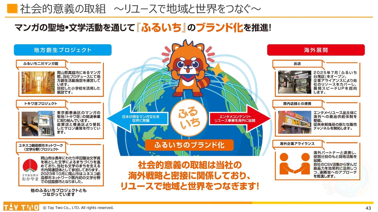 「ふるいち」のブランドをマンガ・アニメ・ゲームに関連付けながら展開し、さらには海外展開に向けた「ふるいち」のブランド化を推進していきたいと考えています。
