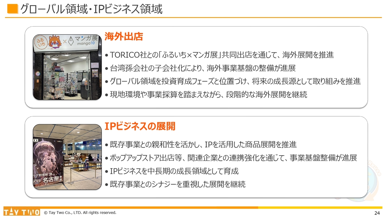 グローバル領域およびIPビジネス領域については、海外出店とIPビジネスの展開となっています。