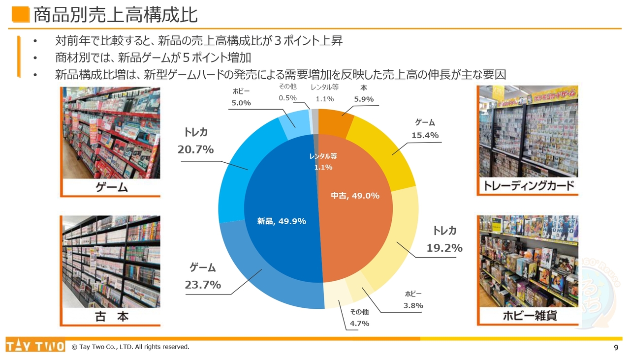 藤原:新品比率の上昇についてですが、特に前期は先ほどもご説明したとおり、ゲームのハードが新品で新たに発売されました。そのため、リユースサイドの中古品に注力しても、グロースに影響が出ているのではないかと思います。