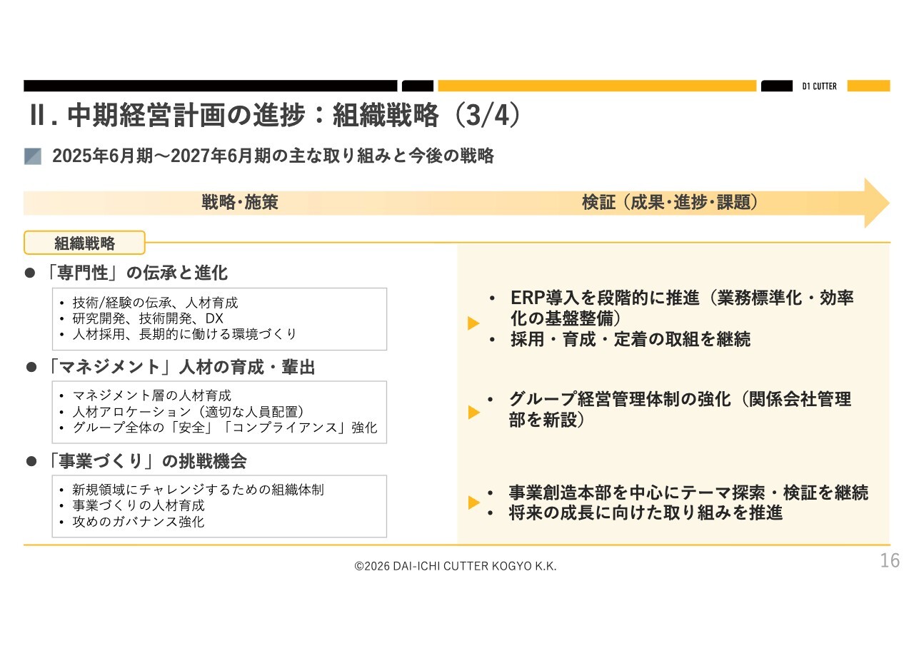 II. 中期経営計画の進捗:組織戦略(3/4)