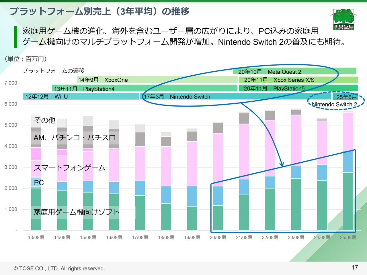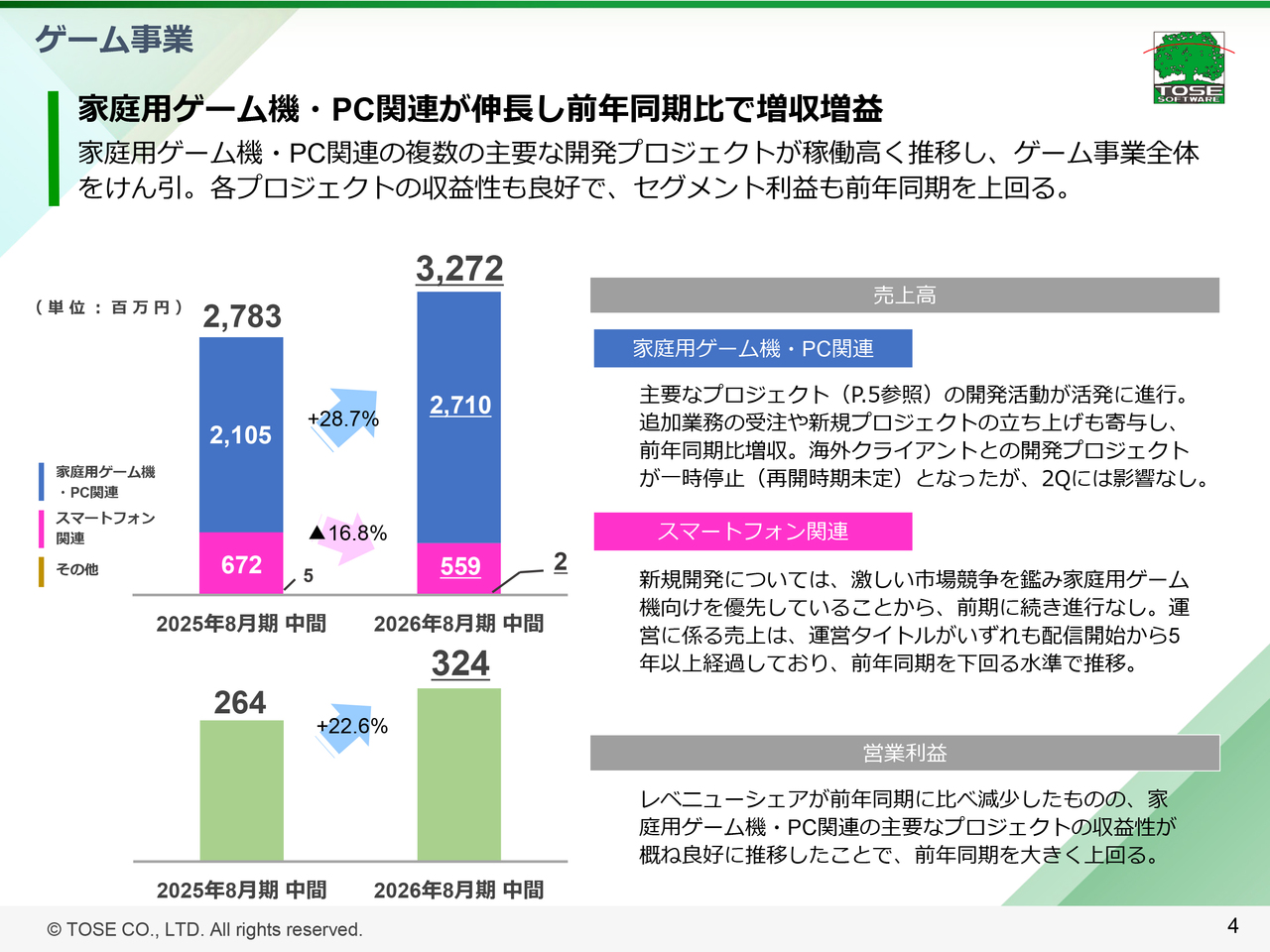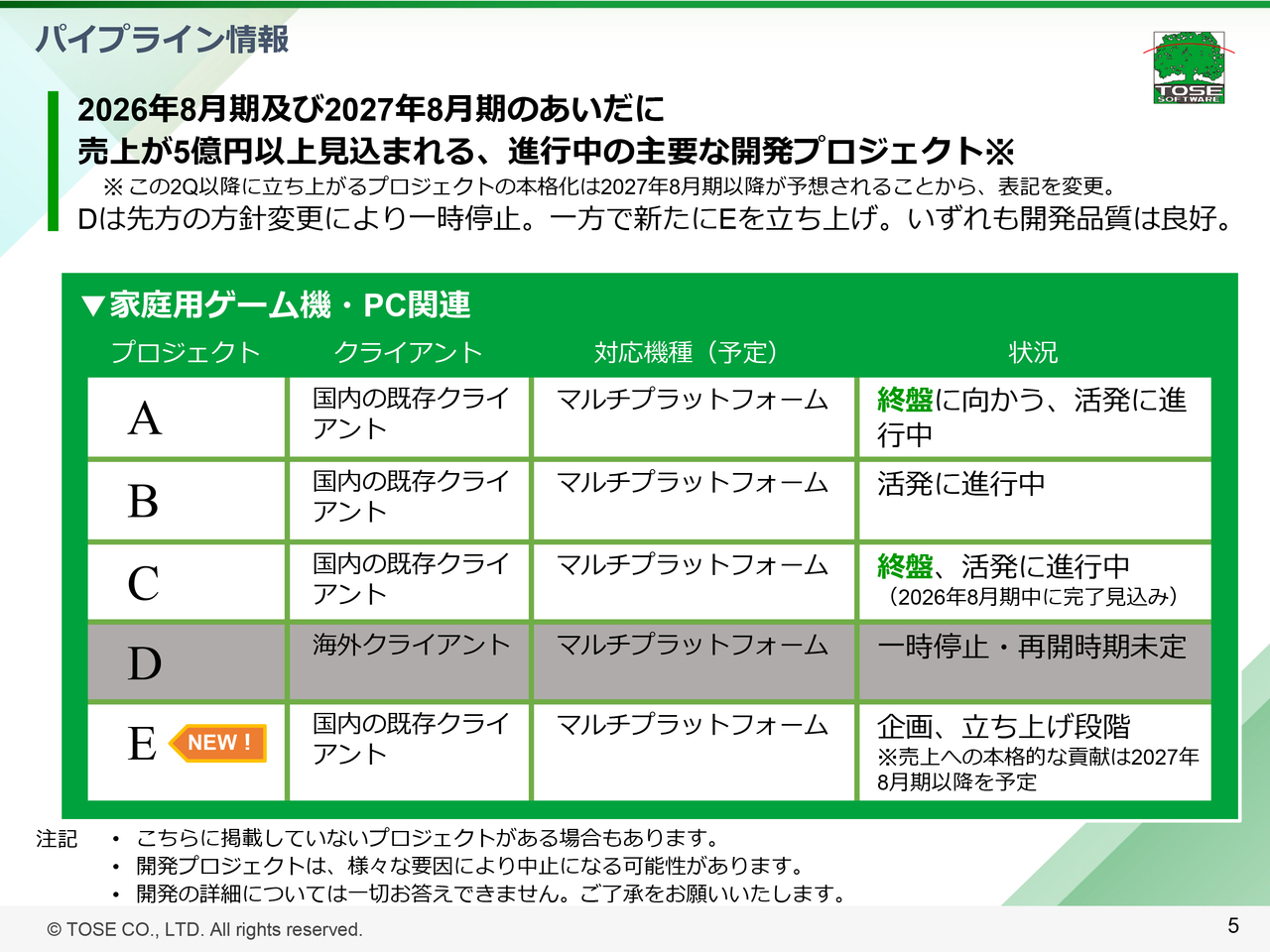 家庭用ゲーム機・PC関連の、主要なプロジェクトごとの状況はスライド5ページにまとめていますので、あわせてご覧ください。