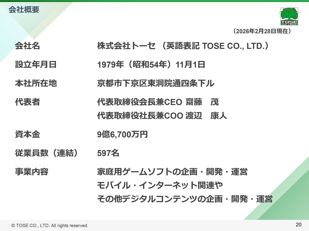 トーセ、ゲーム開発プロジェクトが良好な収益性で進行し増収増益 業績予想達成に向けて受注積み上げに取り組む