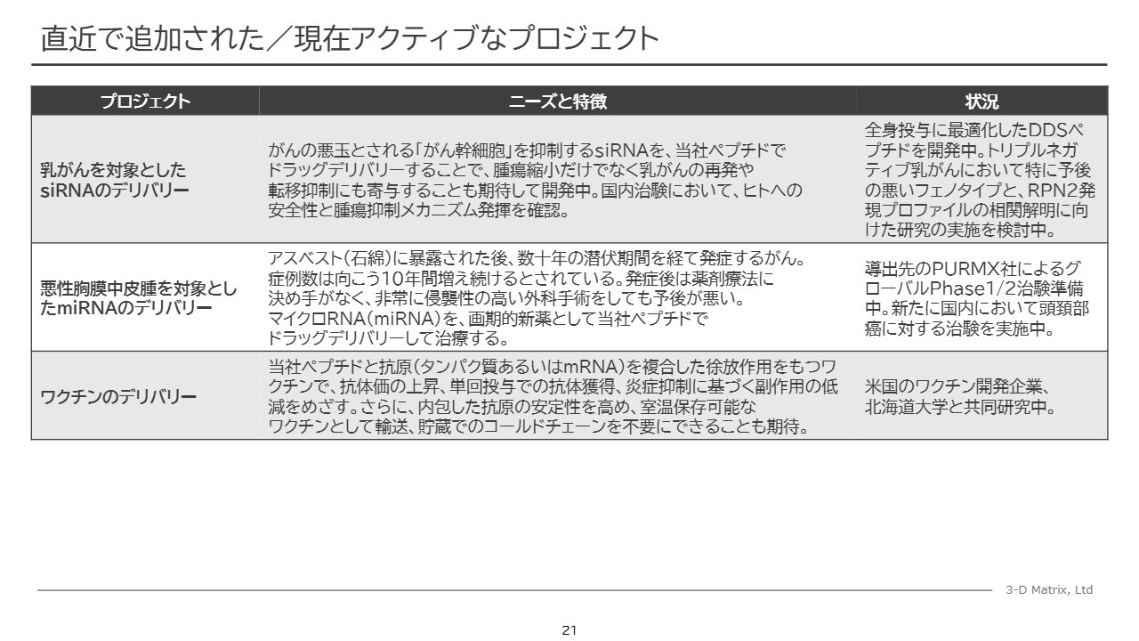 開発の状況です。スライドの赤字で示している進捗があったプロジェクトを中心にご説明します。