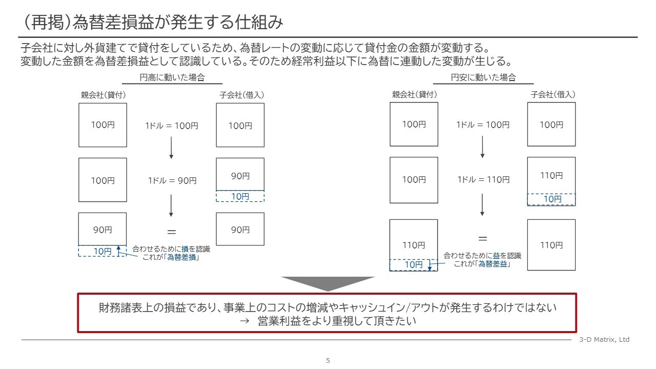 これは財務諸表上の損益であり、事業上のコストが増えたり、キャッシュが増減したりしたわけではありません。そのため、営業利益をより重視して見ていただきたいと考えています。