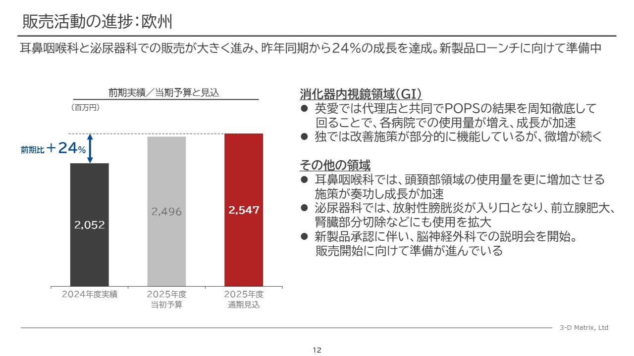 次に欧州について申し上げます。前期比21パーセント成長を計画していましたが、前期比24パーセントの成長が達成できる見込みです。売上高は25億円を上回ると見込んでいます。
