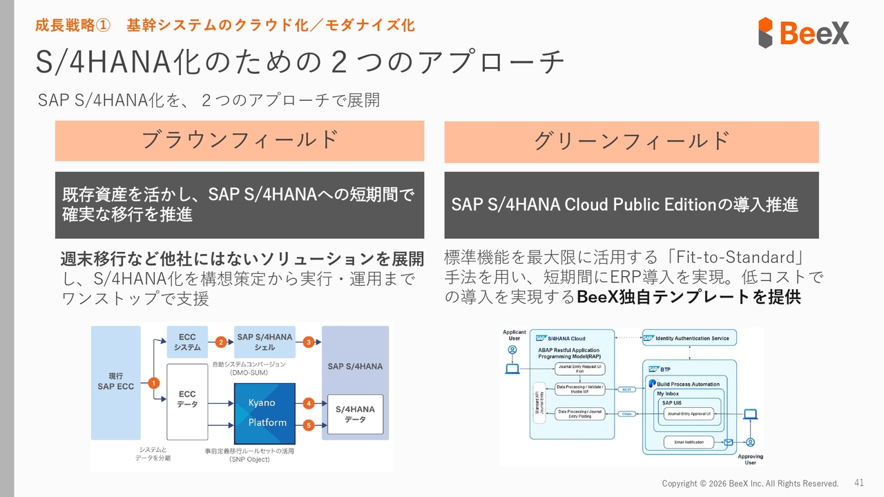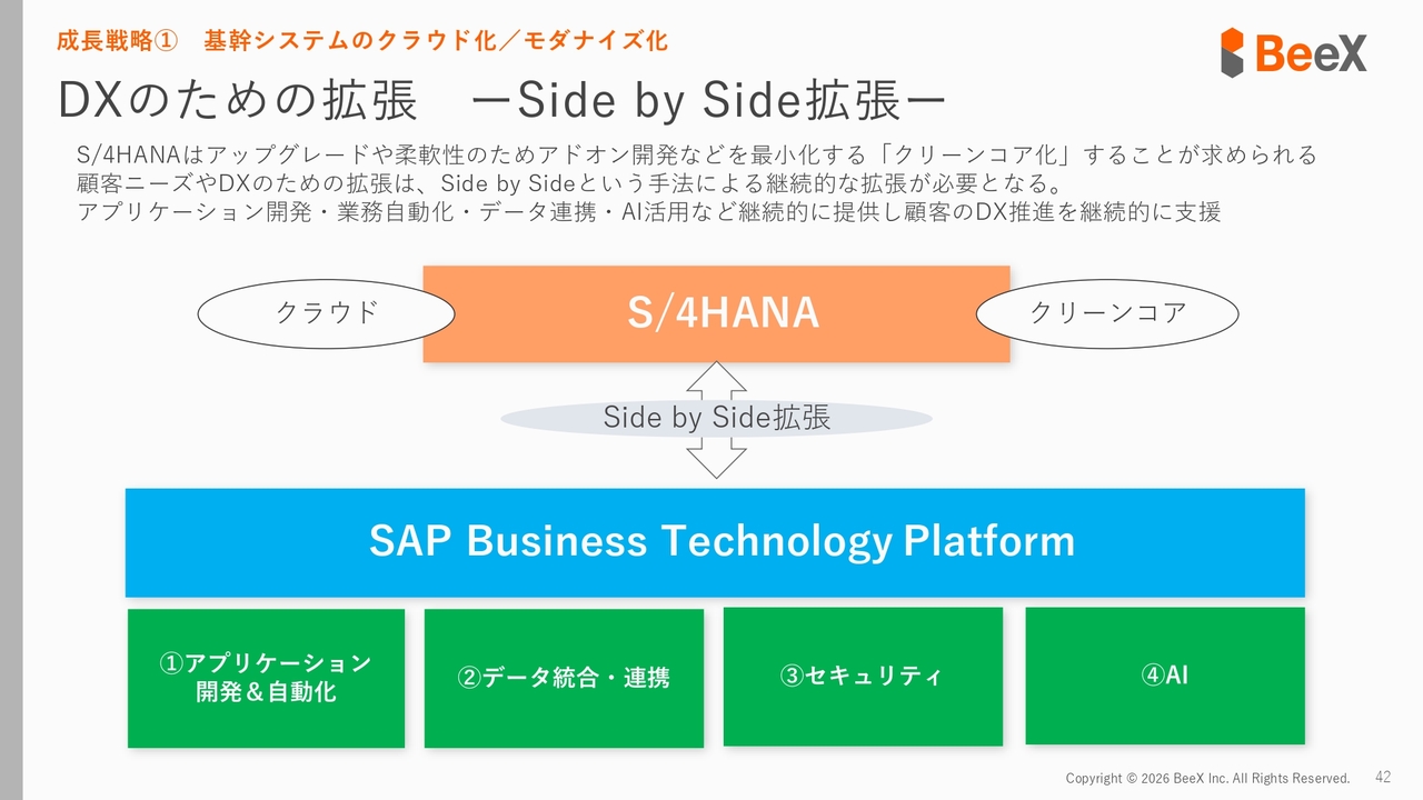 我々は、BTP上のアプリケーション、自動化、データ連携などに強みを持っているため、先ほどお話ししたパブリッククラウドの導入はもちろん、ブラウンフィールドを含めたお客さまのさらなる拡張に向けて、BTP上での拡張を進めていきたいと考えています。