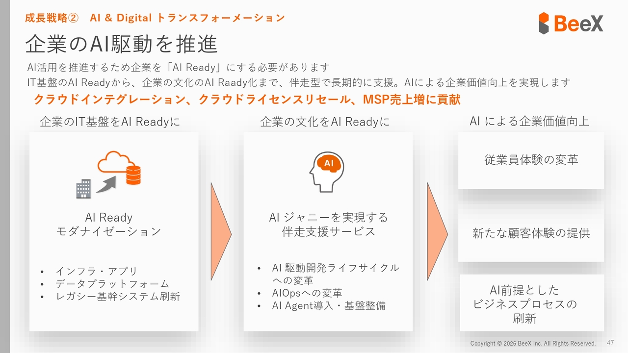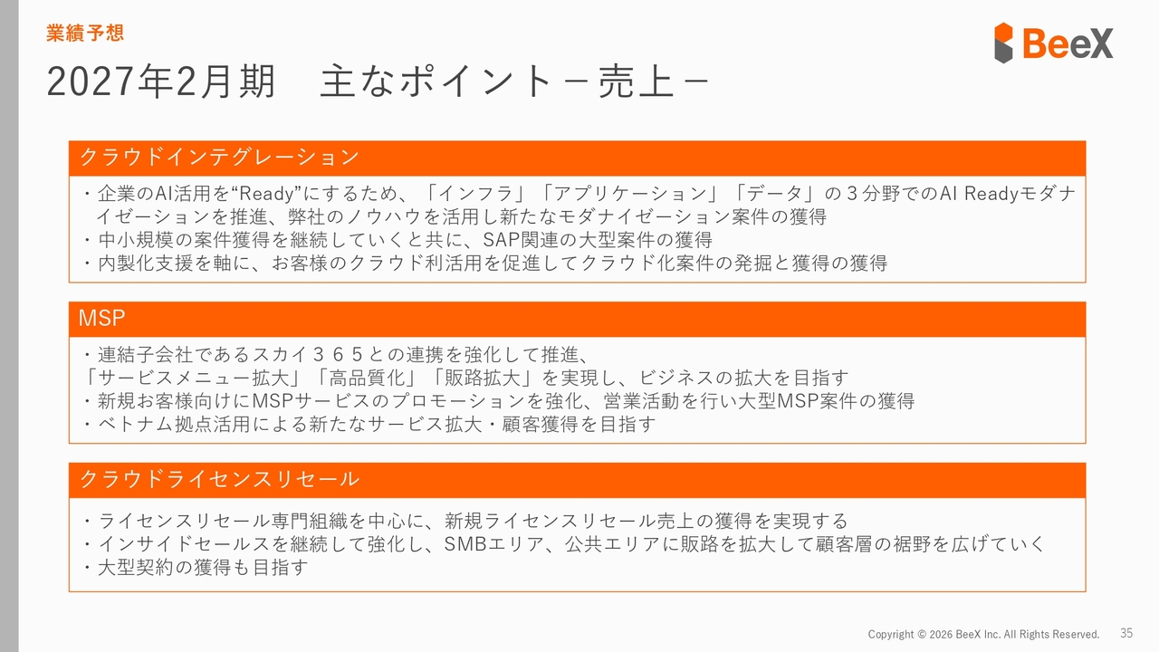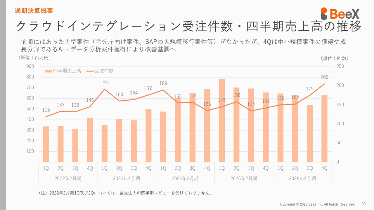 特にAI・データ分析については、第4四半期で終了する案件ではなく、2027年へと続く大型案件となっています。これにより、今後クラウドインテグレーション事業を再び確実に成長させられると考えています。