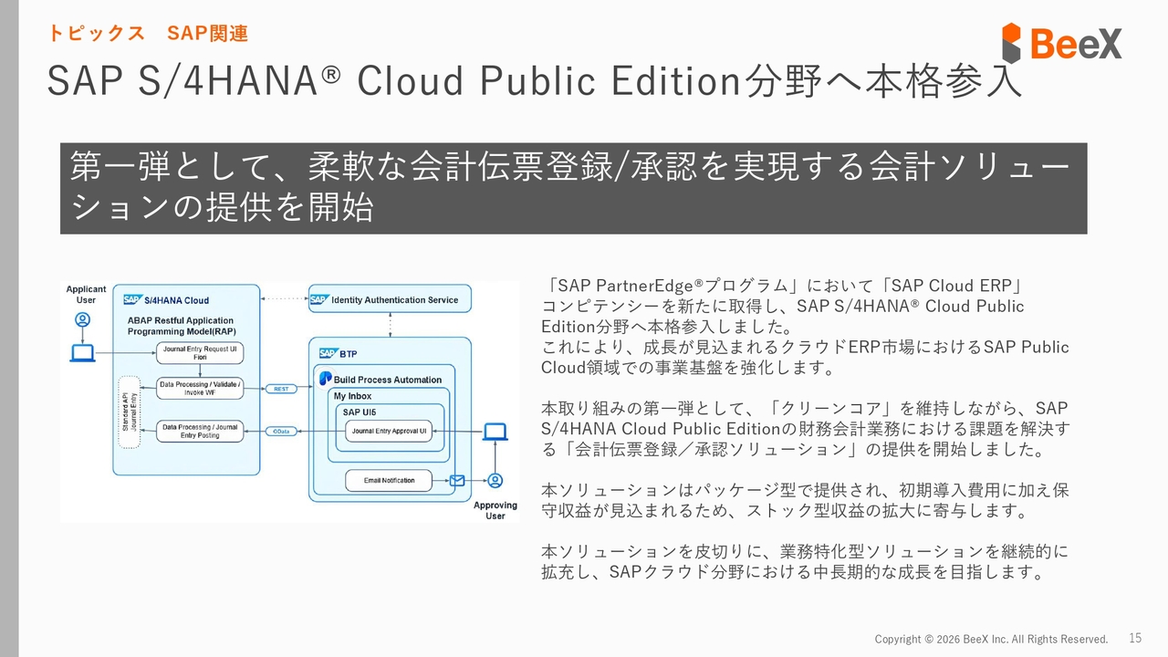 そのほか、「SAP S/4HANA Cloud Public Edition」への参入や新しいサービスの展開も進めています。これらについては後ほどあらためてご説明します。
