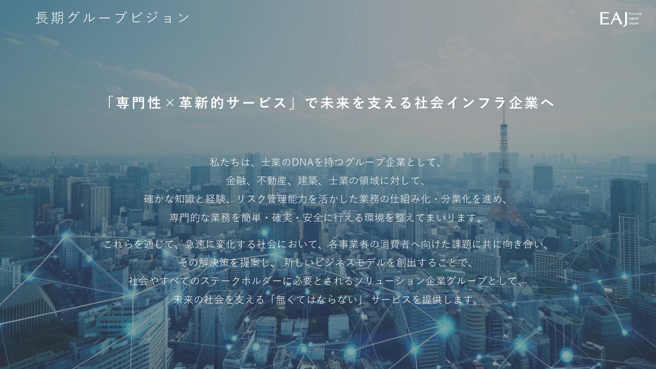 当社グループは、「『専門性×革新的サービス』で未来を支える社会インフラ企業」を目指しています。