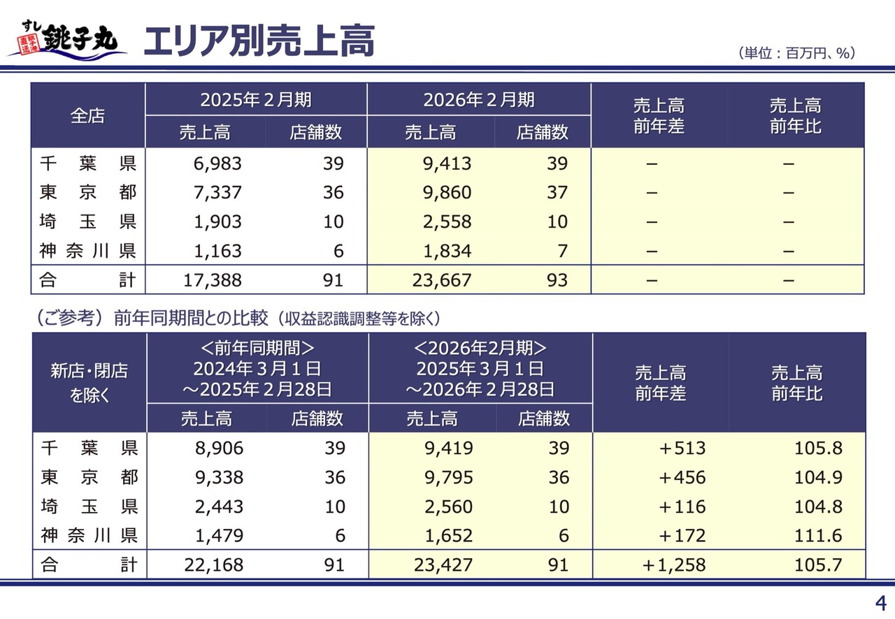 これらの店舗には改装店舗も含まれており、前期・当期ともに改装効果を反映していますが、いずれのエリアも前年を上回る実績を達成しています。