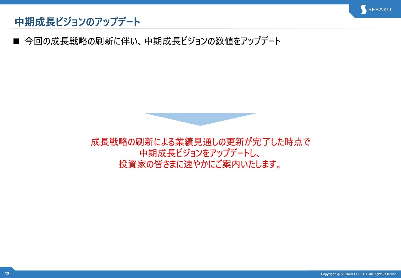 最後に、これらの成長戦略を踏まえ、中期成長ビジョンはアップデートを予定しています。発表できる状況になり次第、速やかに投資家のみなさまへご案内します。