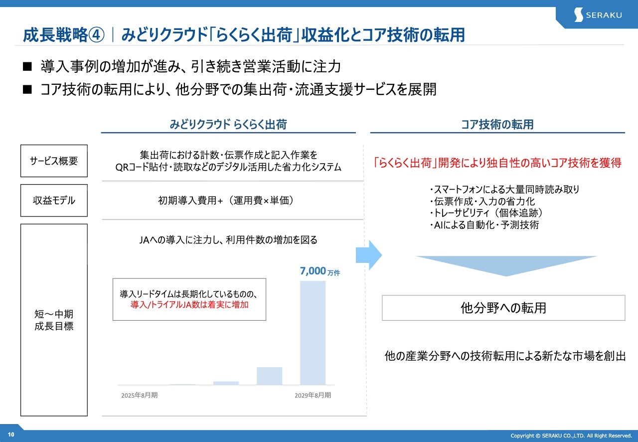 成長戦略④|みどりクラウド「らくらく出荷」収益化とコア技術の転用