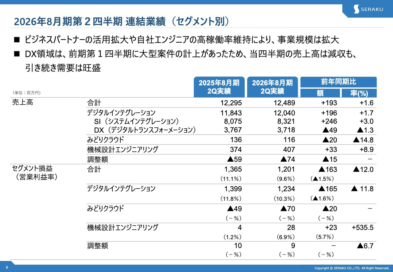 2026年8月期第2四半期 連結業績(セグメント別)