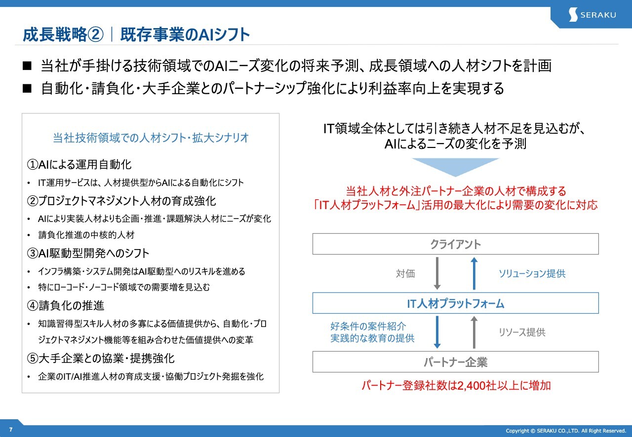成長戦略②|既存事業のAIシフト(IT人材プラットフォームによる短・長期最大化)