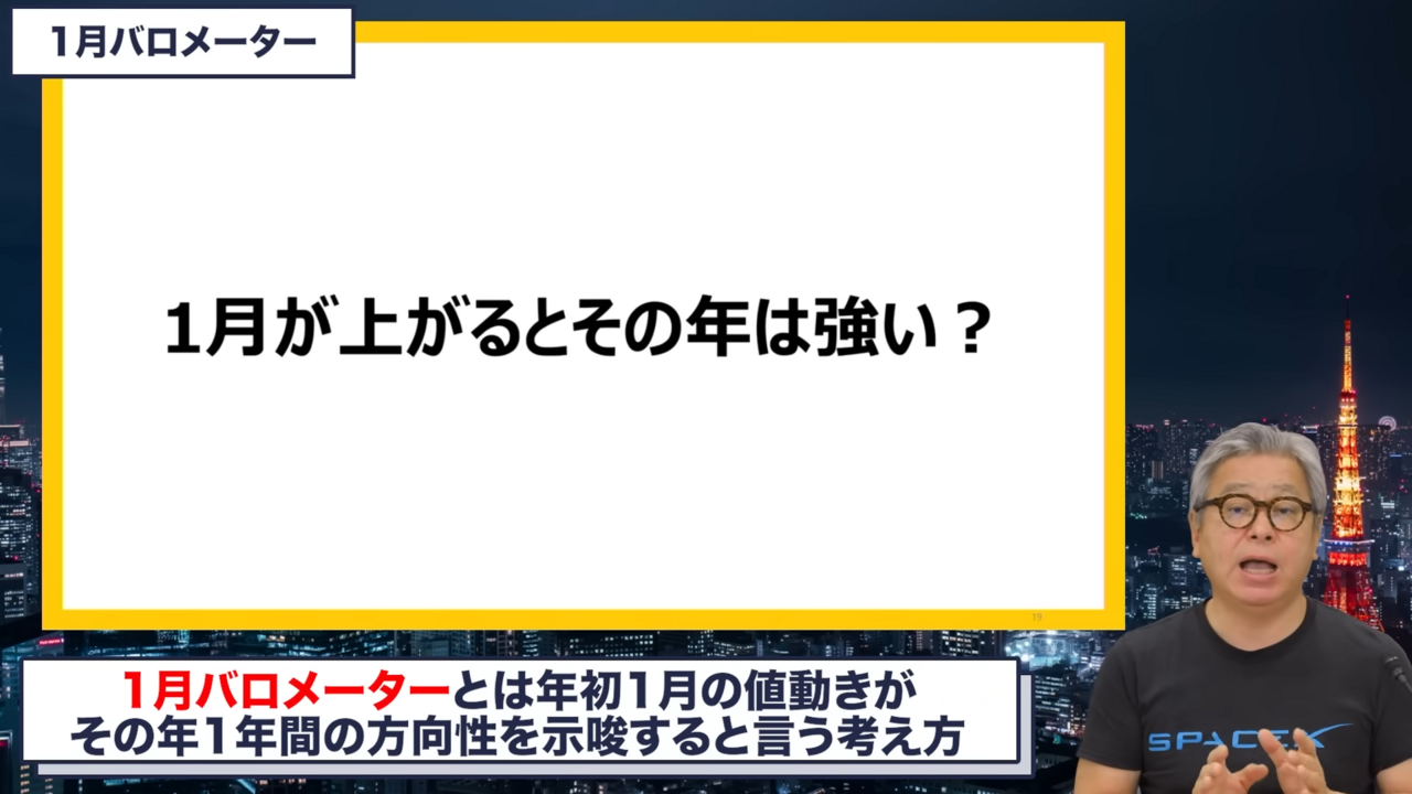 米国市場には、「1月バロメーター」という経験則があります。これは、年初1月の値動きが、その年1年間の方向性を示唆するという考え方です。