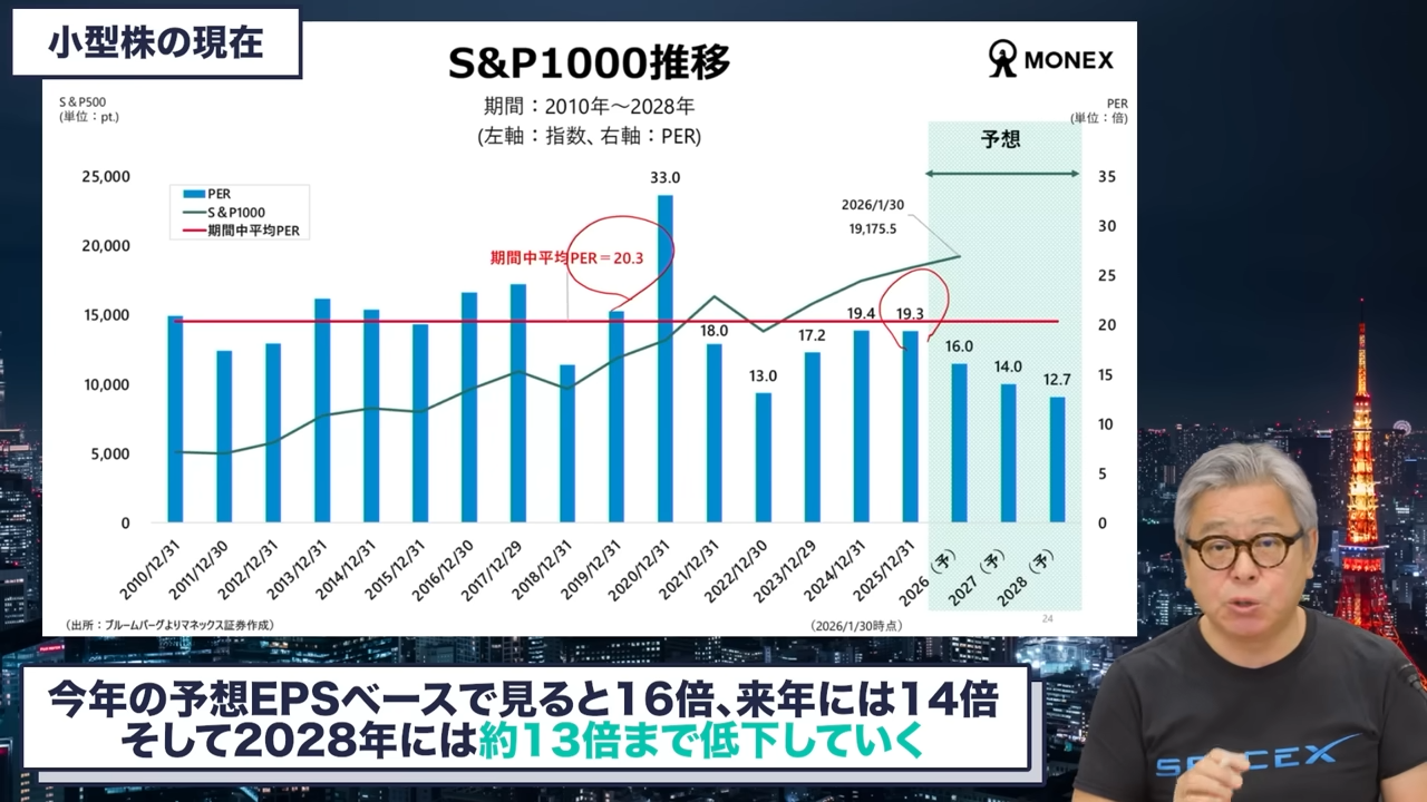 小型株にはバリュエーションの面から見ても歴史的に割安感があります。小型株指数であるS&P1000は、2010年以降の平均PERが20.3倍で、これが長期的な標準水準と言えます。それに対し、昨年末時点ではPER19.3倍と、すでに平均をやや下回っていました。