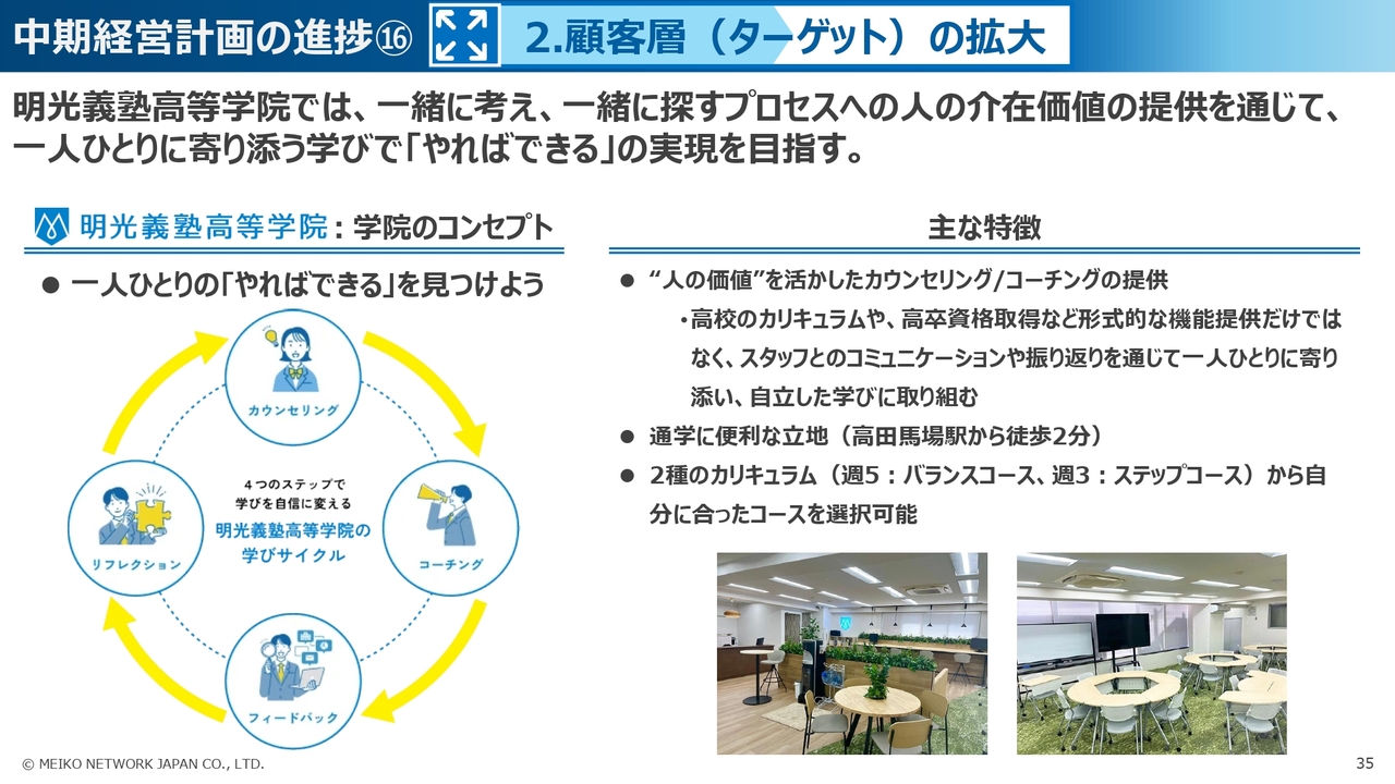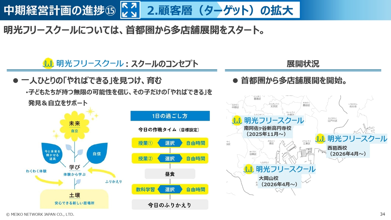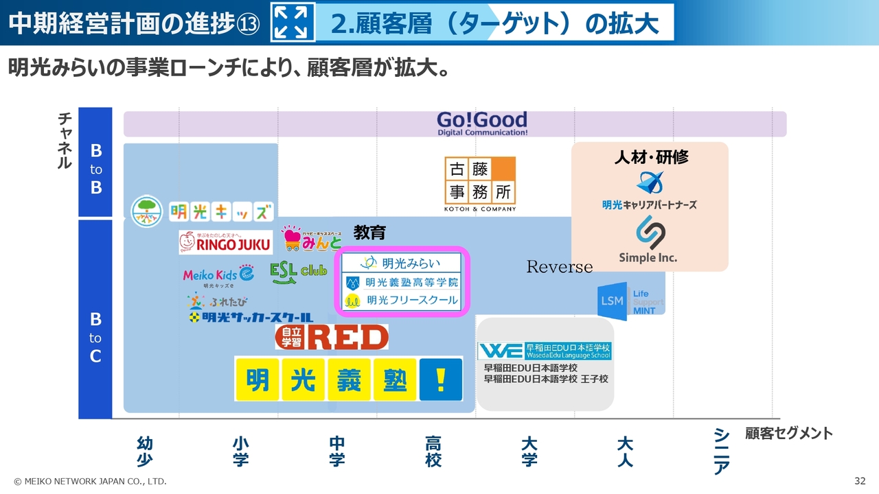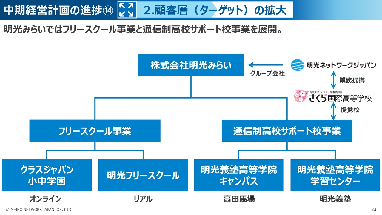 また、ターゲット層の拡大としては、前期末に新たに立ち上げた明光みらいの事業がスタートしています。