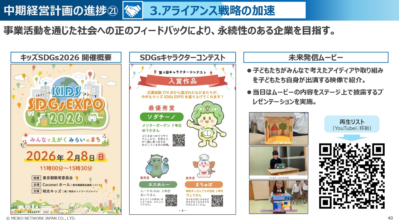 また、明光キッズが開催しているキッズSDGs EXPOについて、4回目となる今年は、東京都教育委員会に後援をいただくイベントとなりました。
