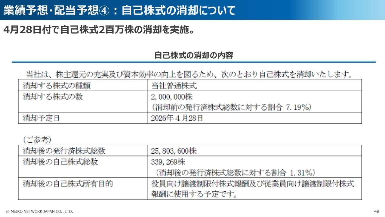 業績予想・配当予想④:自己株式の消却について