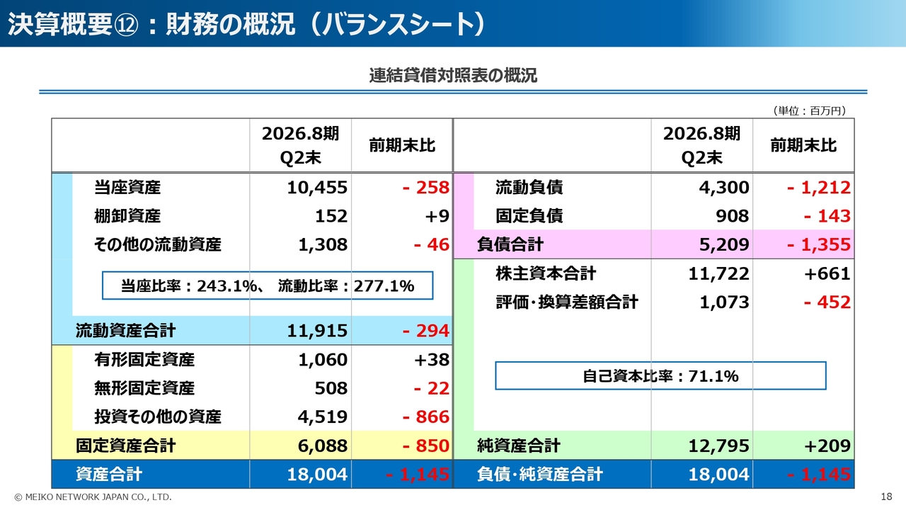 決算概要⑫:財務の概況(バランスシート)