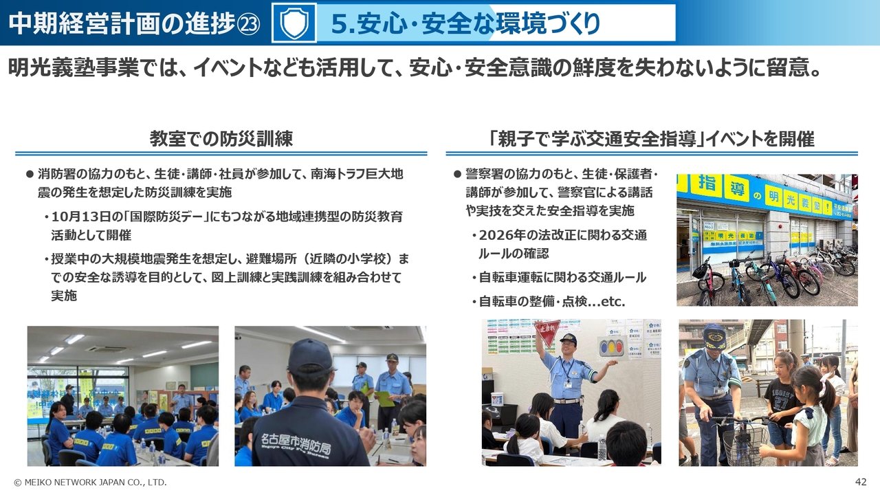 中期経営計画の進捗㉓ 5.安心・安全な環境づくり