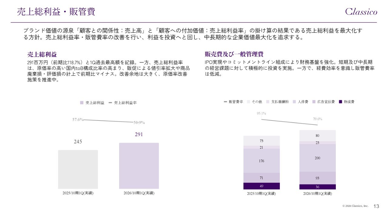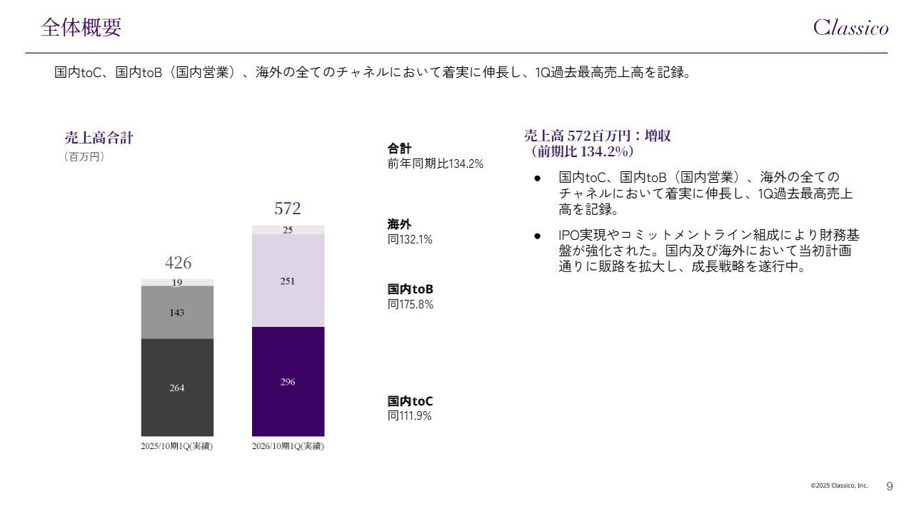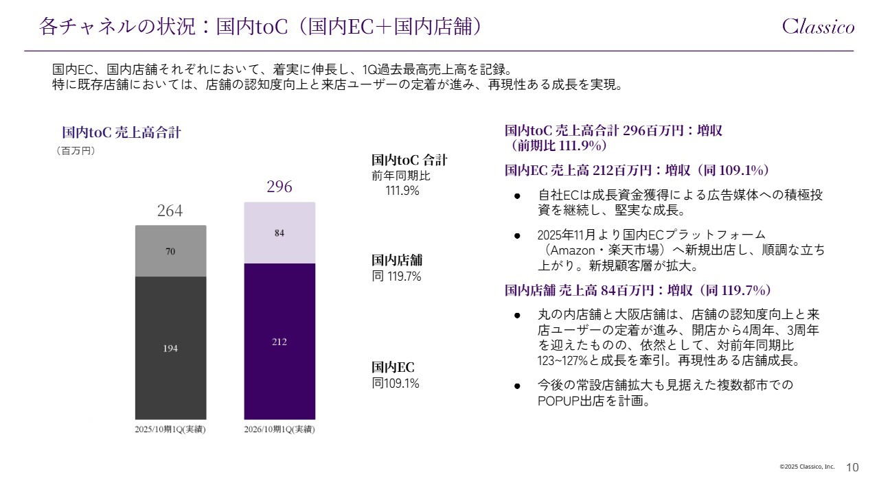 クラシコ、1Q売上高・売上総利益が過去最高を更新 全チャネルが成長し、前年比134.2%となる増収を達成