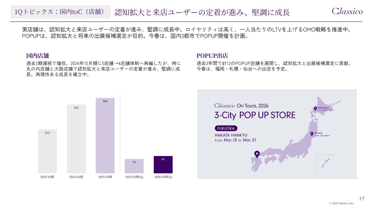 1Qトピックス:国内toC(店舗) 認知拡大と来店ユーザーの定着が進み、堅調に成長