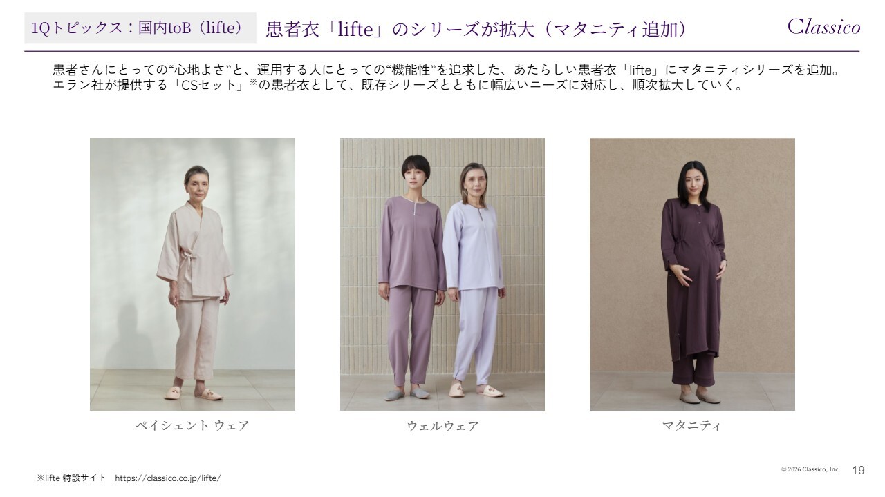 1Qトピックス:国内toB(lifte) 患者衣「lifte」のシリーズが拡大(マタニティ追加)