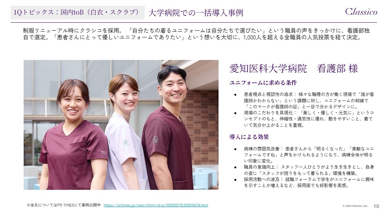 1Qトピックス:国内toB(白衣・スクラブ) 大学病院での一括導入事例