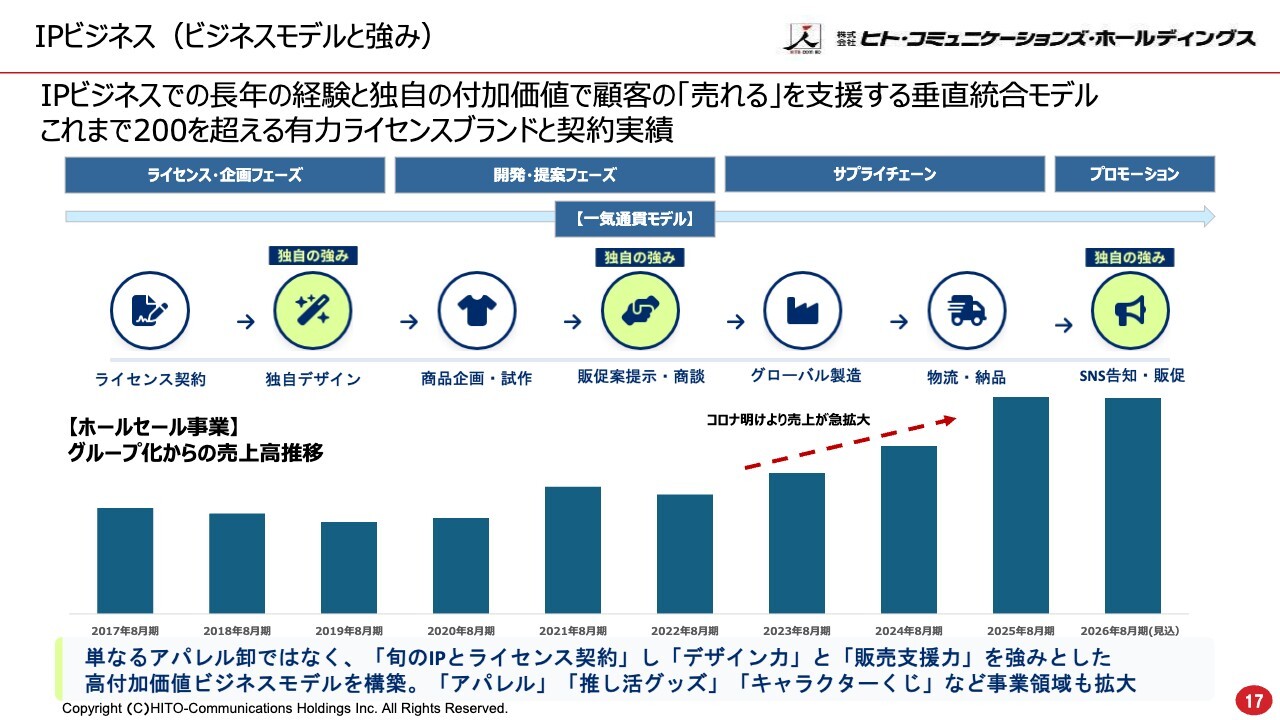 ホールセールは、ライセンスを活用するかたちで、引き続き推し活ブームに乗りながら伸びています。